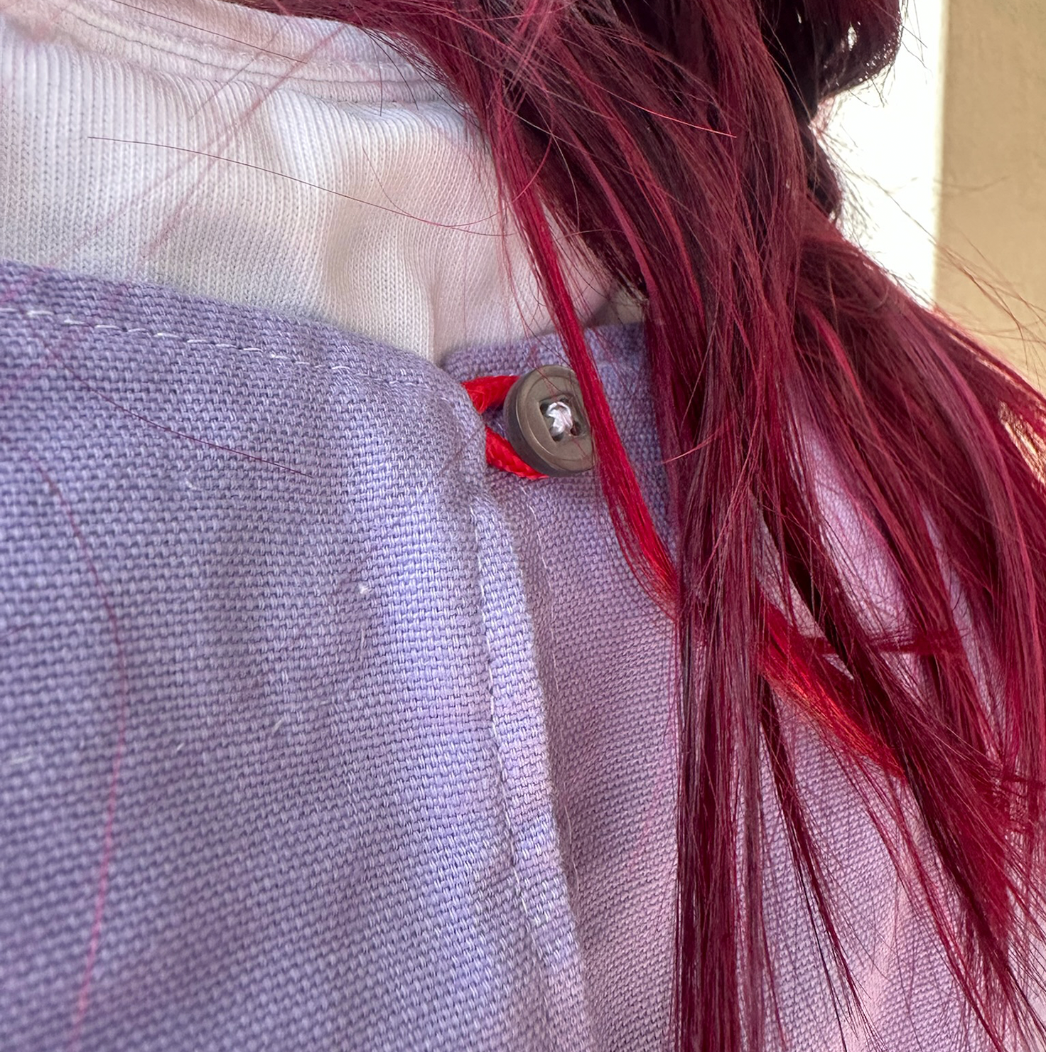 Mit seinem lockeren Schnitt sorgt er für eine entspannte Passform und viel Bewegungsfreiheit. Ein farbiger Knopf am Rücken fügt dem ansonsten neutralen Design einen charmanten Farbakzent hinzu und macht den Look komplett.